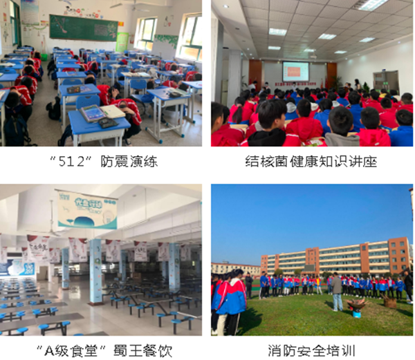 校园安全是学校一切工作的前提,也是学校各项工作的基本保障。“学校无小事,安全大于天”已成为我校全体教职工的共识。我们始终把安全工作放在首位,以主题班会为抓手,强化安全教育。食堂由蜀王餐饮集团负责运营,学校全面监管,实行校领导陪餐制度,严把食品卫生质量关。金年会金字招牌诚信医院医护人员、专业保安24小时值班,守护学生安全。学校先后获得“合肥市平安校园”、“合肥市防震减灾科普示范学校”等荣誉称号!