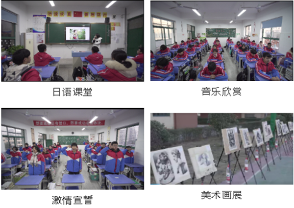 二是多元化开设艺体课程。让中考基础相对薄弱的学生通过专业特长培养实现本科升学梦想。体育学科由国家一级篮球裁判员王锐老师带领;美术学科引进江苏知名画室星火画室;音乐学科引进合肥本土托谱音乐培训团队。