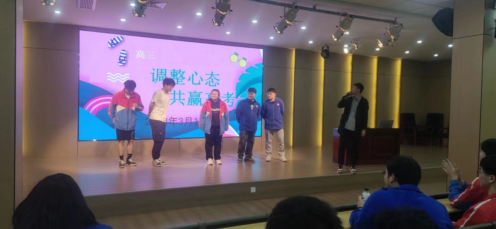 为帮助高三学子缓解考试焦虑,释放压力,培植信心,助力学生学会自我心理调适,我校高三年级组织了以“调整心态 共赢高考”为主题的高三心理讲座。本次讲座由我校心理教师盛爽老师主讲,全体高三学生及各班班主任参加。
