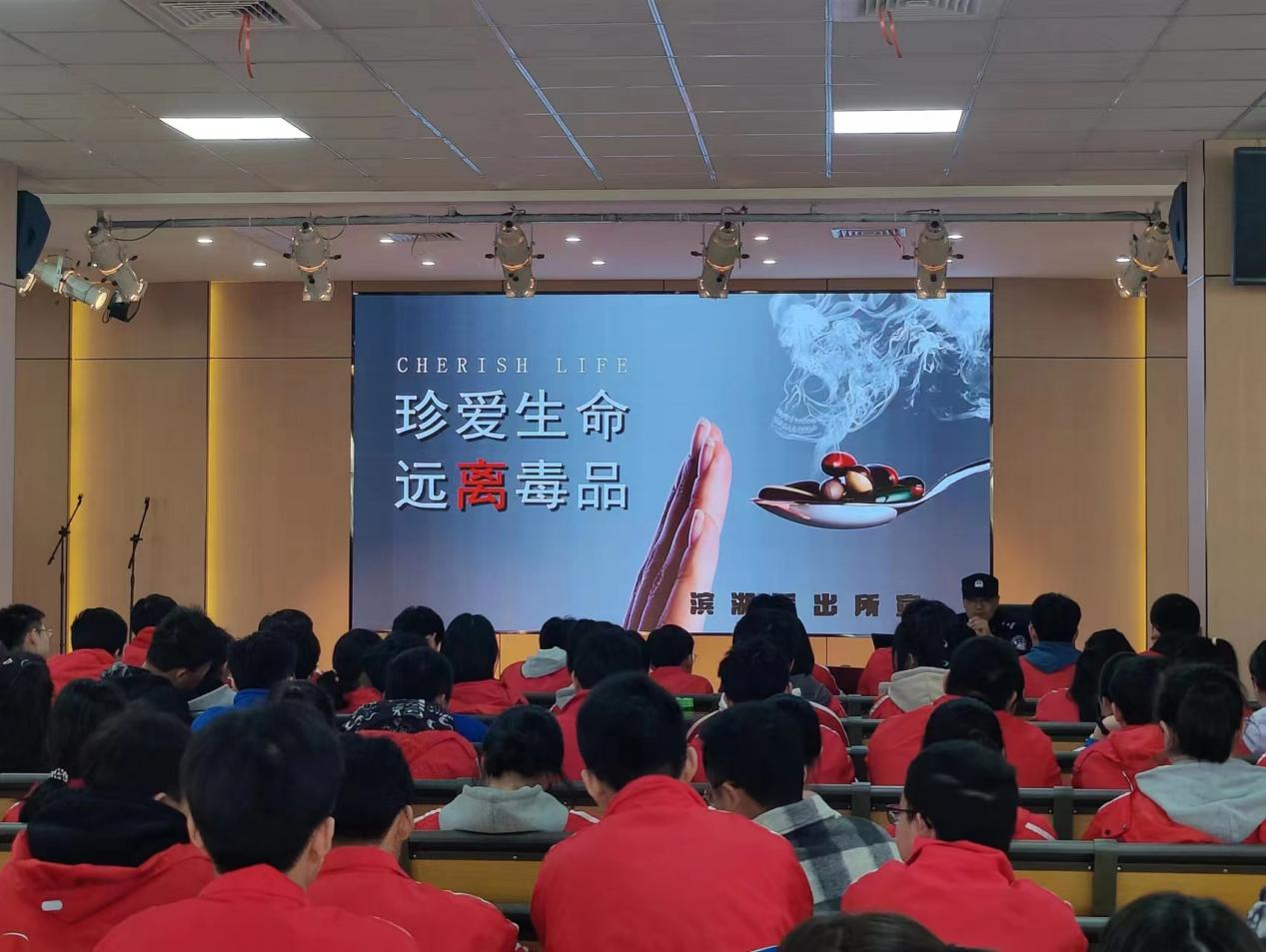 出席禁毒知识宣讲活动的是来自滨湖派出所的民警同志滨湖派出所所长彭警官,他们向同学们介绍了毒品的概念、特性、种类、历史渊源,合成毒品与传统毒品的区别,毒品的危害等,对青少年怎样远离毒品、如何防范毒品等问题作了深入浅出的讲解。